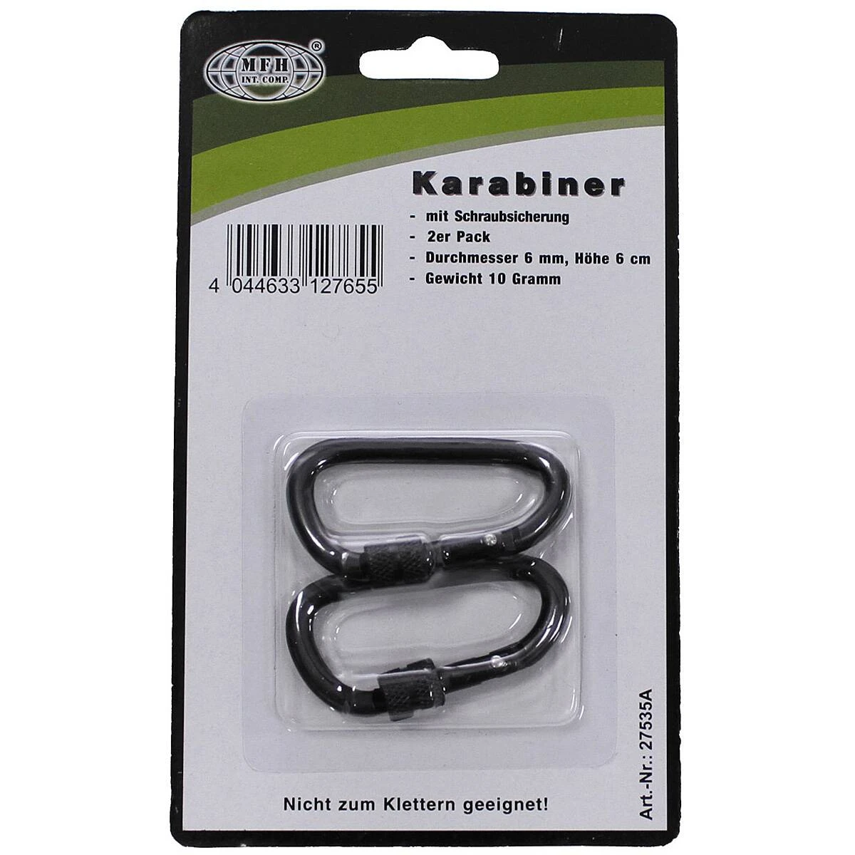– 2-er Pack D-Karabinerhaken mit Schraubsicherung