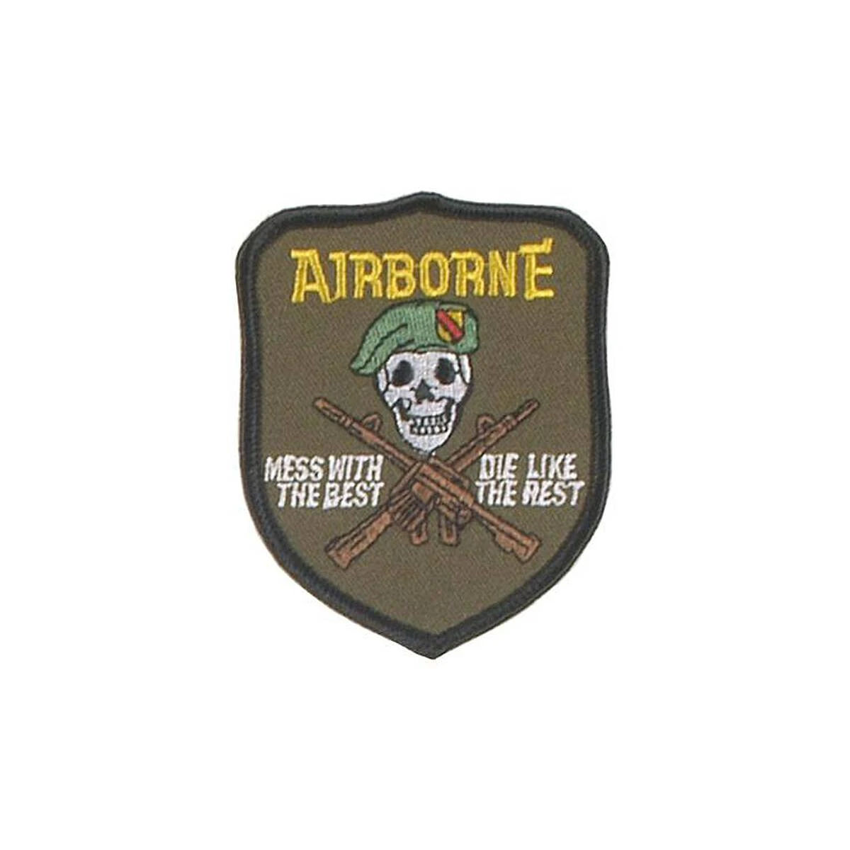Armabzeichen der “ US Airborne – mess with the best“ in Rundform.