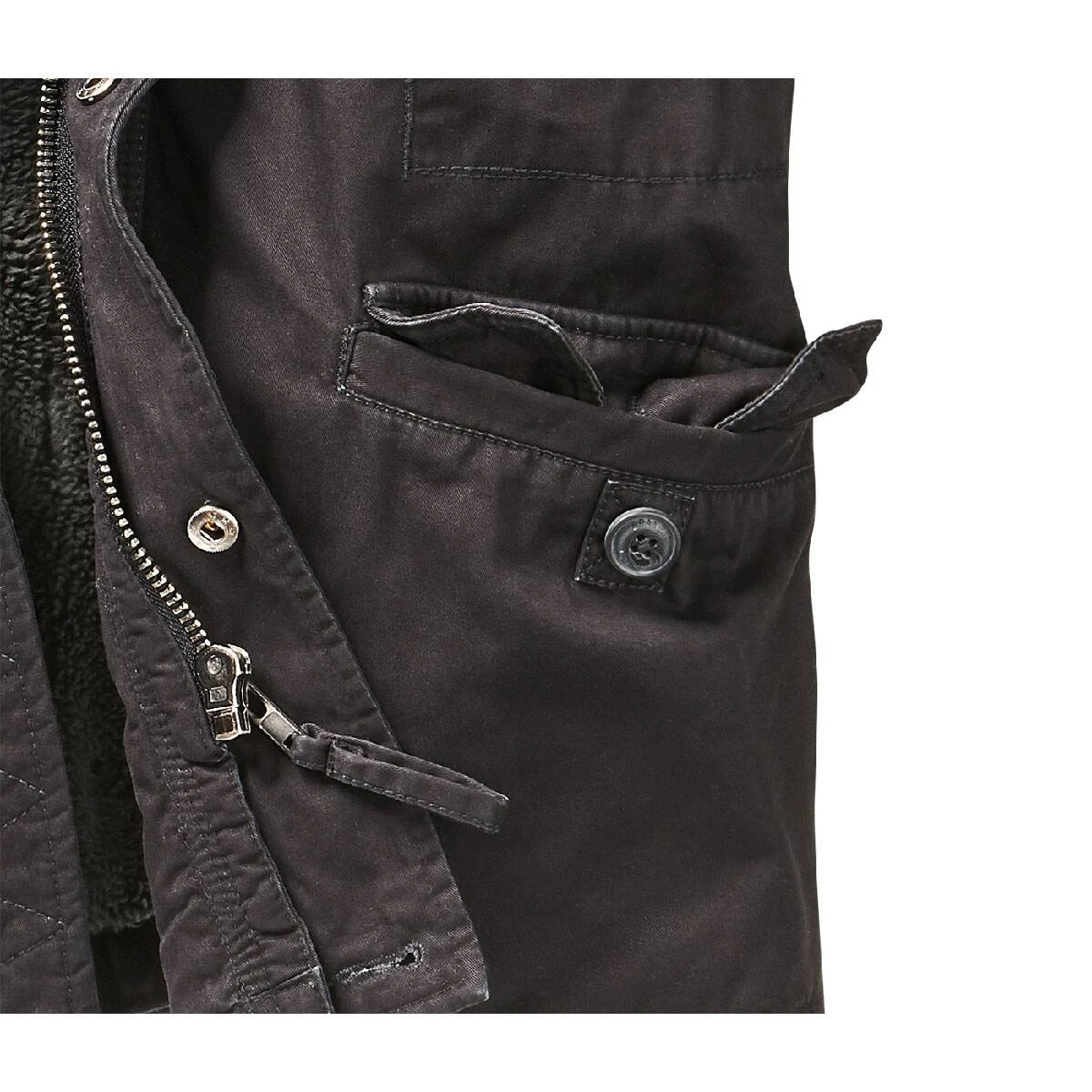 Die beliebte Britannia Jacke gibt es jetzt endlich auch in der Winterausführung. Durch das wunderbar weiche Teddyfutter und die Kapuze ist Sie hervorragend für die kalte Jahreszeit geeignet. Die gerade geschnittene, modifizierte Feldjacke besitzt einen stilvollen Stehkragen mit Kunstlederapplikation und integrierter Kapuze, Logo-Badges am Ärmel sowie Schulterklappen mit Knöpfen. Die Ärmel lassen sich mittels Klett und Druckknopf in der Weite regulieren. In den vier großen Fronttaschen mit Patte und Knopf gibt es ausreichend Stauraum. Der durchgehende Front-Reißverschluss wird durch eine Abdeckleiste geschützt.