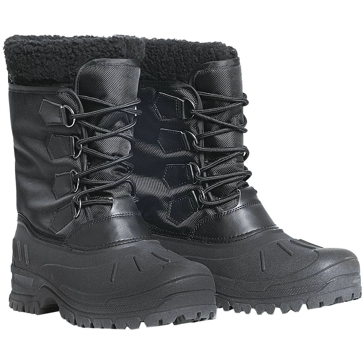 Die Winterstiefel Highland Weather Extrem Boots von der Modemarke Brandit sind Kälteschutzstiefel für extreme Witterungsbedingungen. Sie zeichnen sich durch ein besonders widerstandsfähiges und flexibles Material aus, sind wasserabweisend und wärmen durch die herausnehmbare Filzfütterung mit Kunstfellrand hervorragend. Die Sohle und der Fußbereich sind aus einem Stück gefertigt und somit wasserdicht. Der Schaftbereich ist aus weichem Polyester-Mesh-Gewebe. Das sorgt für sehr angenehmen Tragekomfort. Die griffige Sohle und das 8-Loch Schnürsystem sorgen für einen sicheren Halt.