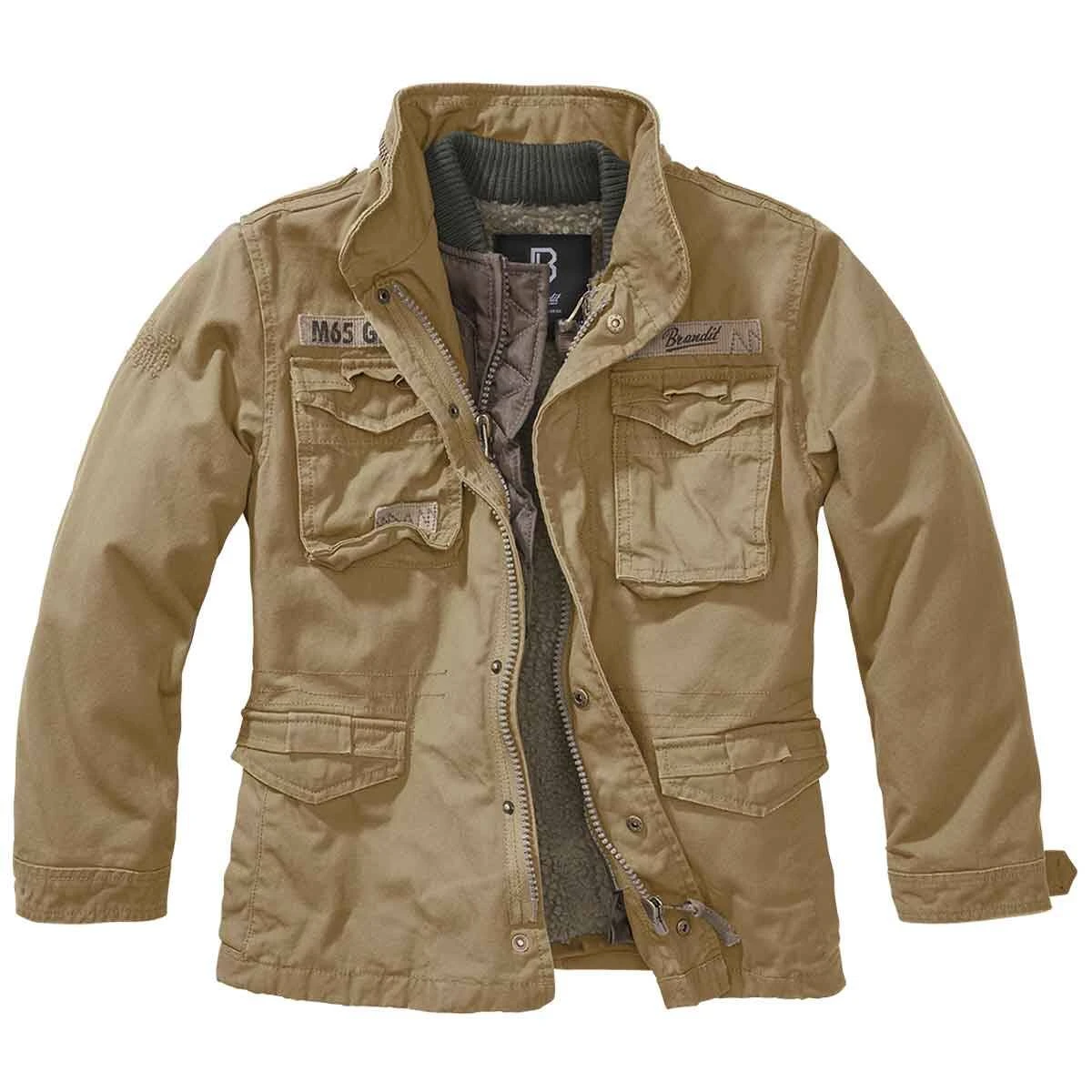 Die Kids M65 Giant Jacke von Brandit ist eine Premiumjacke nach dem Vorbild der Original M65 Jacke. Diese Kinderjacke besteht aus einem robusten und langlebigen Mischgewebe und eignet sich für Schule und Freizeit. Je nach Außentemperatur lässt sich die warme Innenjacke herausnehmen. Die Ärmelenden sind mittels Klettverschlusses verstellbar. Insgesamt 2 seitliche Einschubtaschen, die versteckte Kapuze im Kragen, die fixierten Schulterklappen und die zahlreichen Vintage-Applikationen machen die US M65 Feldjacke für Kinder zu einem absoluten Hingucker.