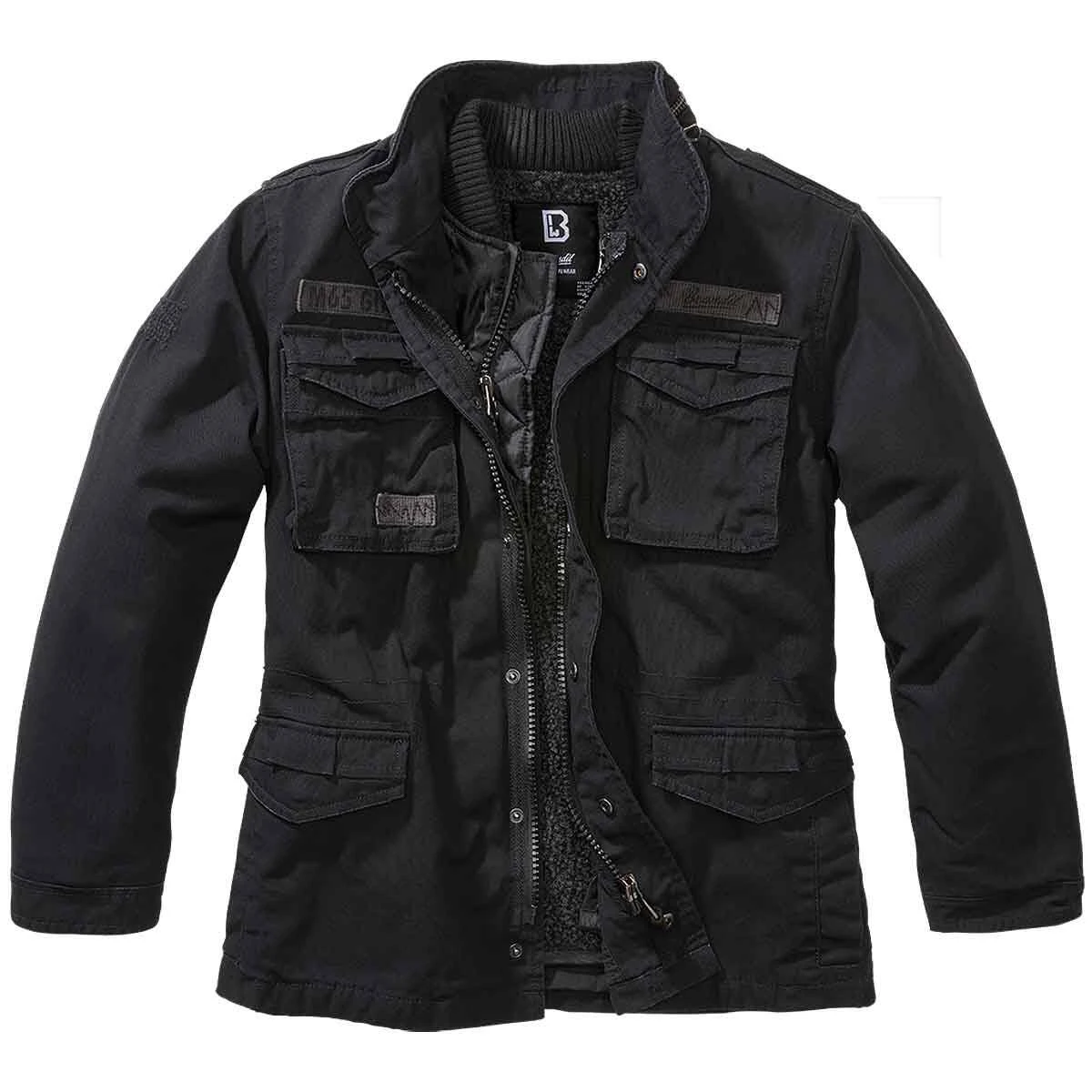 Die schwarze Kids M65 Giant Jacke von Brandit ist eine Premiumjacke nach dem Vorbild der Original M65 Jacke. Diese Kinderjacke besteht aus einem robusten und langlebigen Mischgewebe und eignet sich für Schule und Freizeit. Je nach Außentemperatur lässt sich die warme Innenjacke herausnehmen. Die Ärmelenden sind mittels Klettverschlusses verstellbar. Insgesamt 2 seitliche Einschubtaschen, die versteckte Kapuze im Kragen, die fixierten Schulterklappen und die zahlreichen Vintage-Applikationen machen die US M65 Feldjacke für Kinder zu einem absoluten Hingucker.