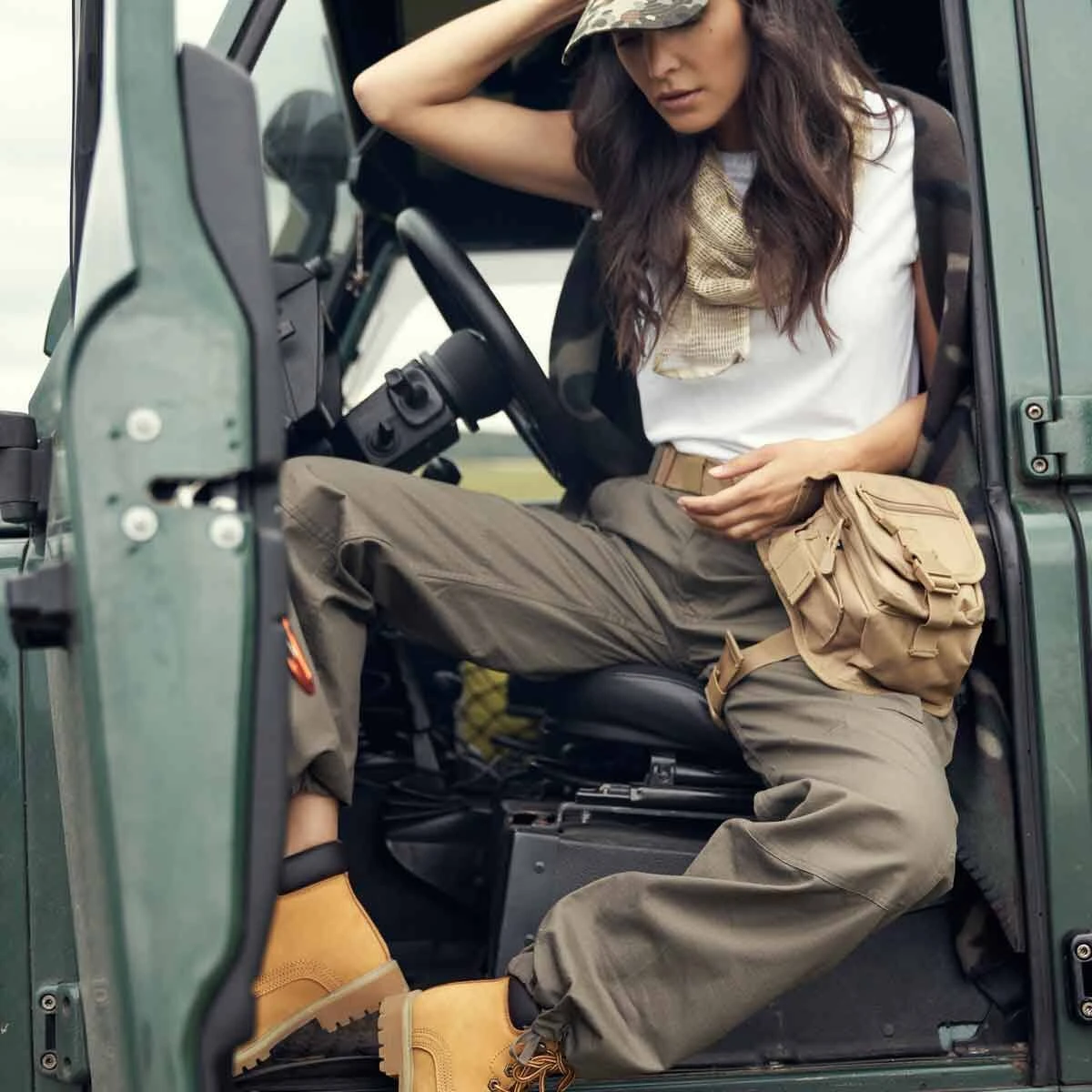 Diese olivfarbene Women BDU Ripstop Trouser von Brandit ist eine wasserabweisende, pflegeleichte Hose für Outdoor-Aktivitäten, Hobby oder den Beruf. Das strapazierfähige Ripstop Material ist äußerst leicht und robust. Die Bundweite ist regulierbar, Knie und Gesäßpartie wurden verstärkt. Weitere praktische Eigenschaften sind das Zuband am Bein-Ende für die Weitenregulierung. 2 seitliche Einschubtaschen, 2 Gesäßtaschen und 2 seitlich angebrachte Cargo Taschen lassen genug Platz für Notwendiges. Diese Ripstop Damenhose ist eine praktische Outdoorhose für jede Gelegenheit.