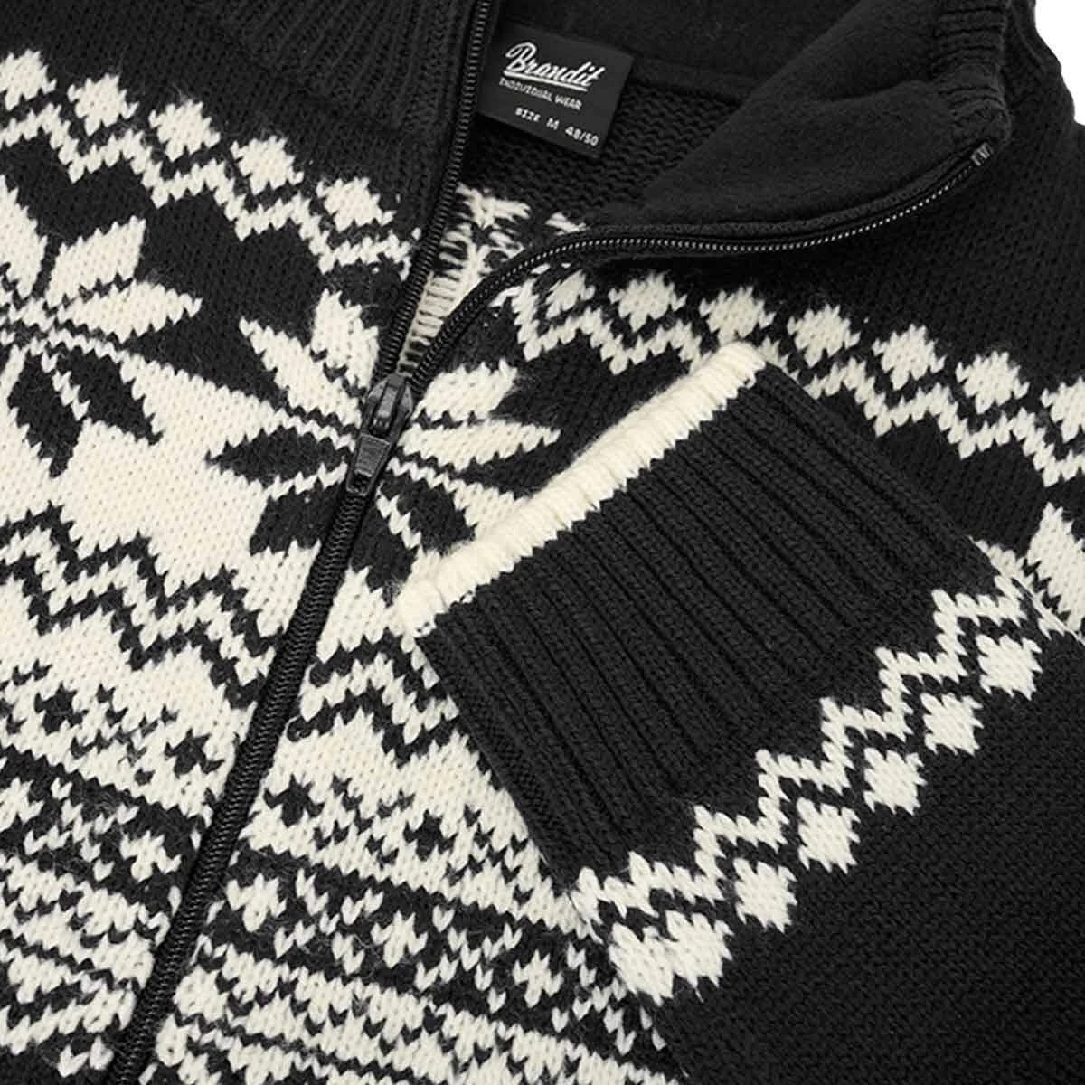 Der klassische Norweger Cardigan von Brandit im skandinavischen Design ist gerade geschnitten. Die zeitlose Strickjacke mit hochwertigen Frontreißverschluss, dem weichen Fleece-Einsatz im Stehkragen, Strickbündchen und Saum sorgen für ein angenehmes, weiches Tragegefühl ganz ohne Kratzen. Die beiden seitlichen Einschubtaschen werden mittels Reißverschlusses geschlossen. Machen Sie die Wolljacke zu Ihrem wärmenden Komplizen für die kühlen Tage.
