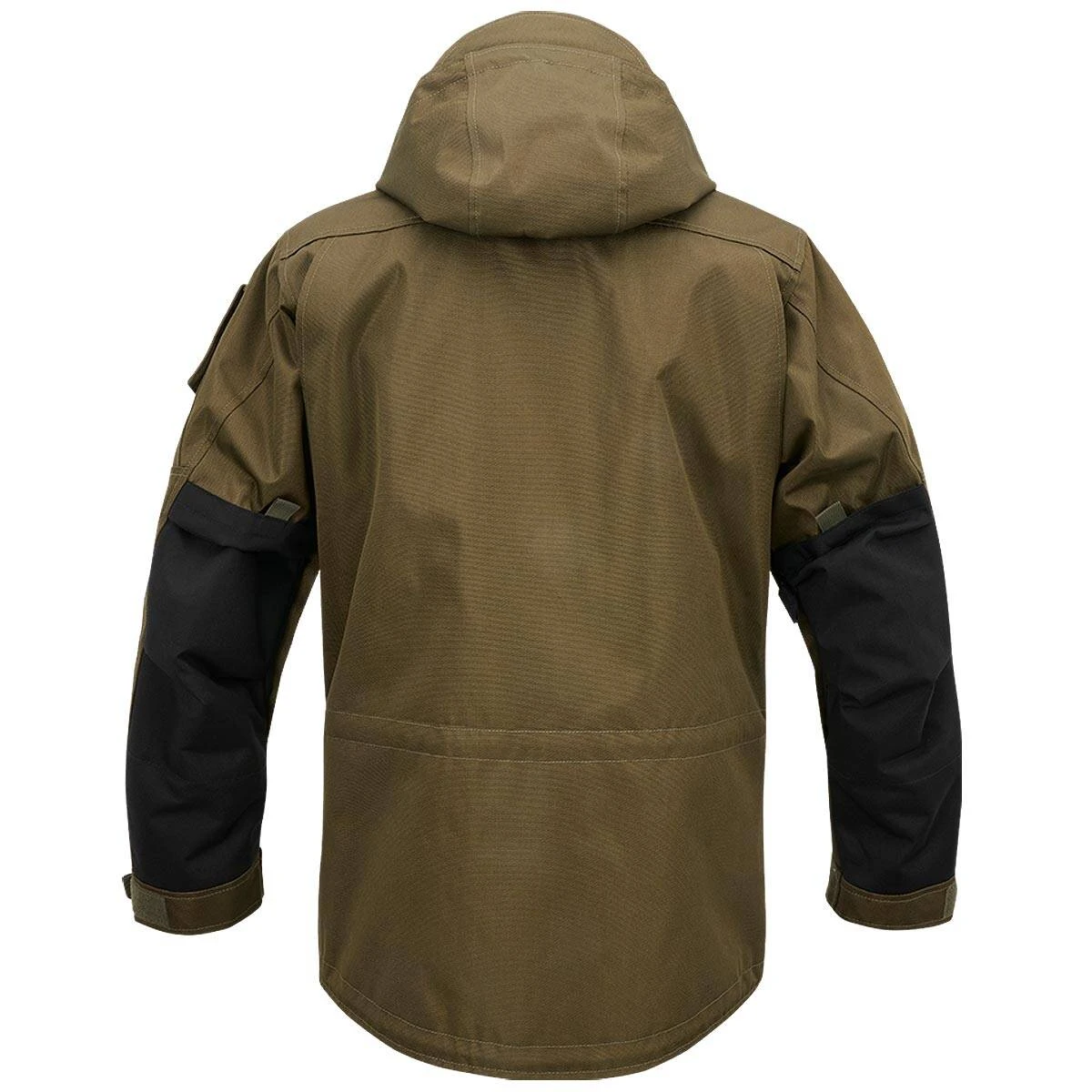 Die funktionelle, taktische Performance Outdoorjacke von Brandit ist eine robuste Allwetterjacke für das ganze Jahr. Diese Herrenjacke besitzt ein wasserabweisendes Außenmaterial aus 900D-Polyester und 500D Cordura. Der stabile 2-Wege YKK Reißverschluss ist mit einer Windschutzleiste hinterlegt. Das atmungsaktive Mesh-Innenfutter und die Ventilationsöffnungen verhindern übermäßiges Schwitzen und sorgen für eine gute Belüftung. Die dank Klettverschluss und Kordelzug einstellbare Kapuze besitzt einen zusätzlichen Schirm und lässt sich bei Bedarf mittels Reißverschlusses abtrennen. Der Ellenbogenbereich hält dank Cordura-Verstärkung auch stärkeren Beanspruchungen stand. Die Taille und der Saum sind mittels Kordelzug weitenverstellbar. Die Ärmelabschlüsse sind mittels Klettverschlusses ebenfalls weitenverstellbar. Weitere nützliche Features sind die 3 aufgesetzten Fronttaschen mit Klettverschluss und den unterlegten, zusätzlichen Reißverschlussfächern, die Molle-Bänder auf Brust und Tasche, die Armtaschen für Ellenbogen-Schützer, sowie eine Klettfläche auf Oberarm, rechter und linker Brust für das Anbringen von Patches. Die verdeckte Fronttasche, eine Unterarmtasche sowie die große Innentasche sind jeweils mit einem Reverse-Reißverschluss ausgestattet. Die Oberarmtasche passt auch für große Smartphones. Alle YKK Reißverschlüsse besitzen einen Zipper-Puller. Insgesamt eine sehr praktische Outdoorjacke mit viel Stauraum für die Aufbewahrung mitgeführter Gegenstände, Geldbörse und Handy.