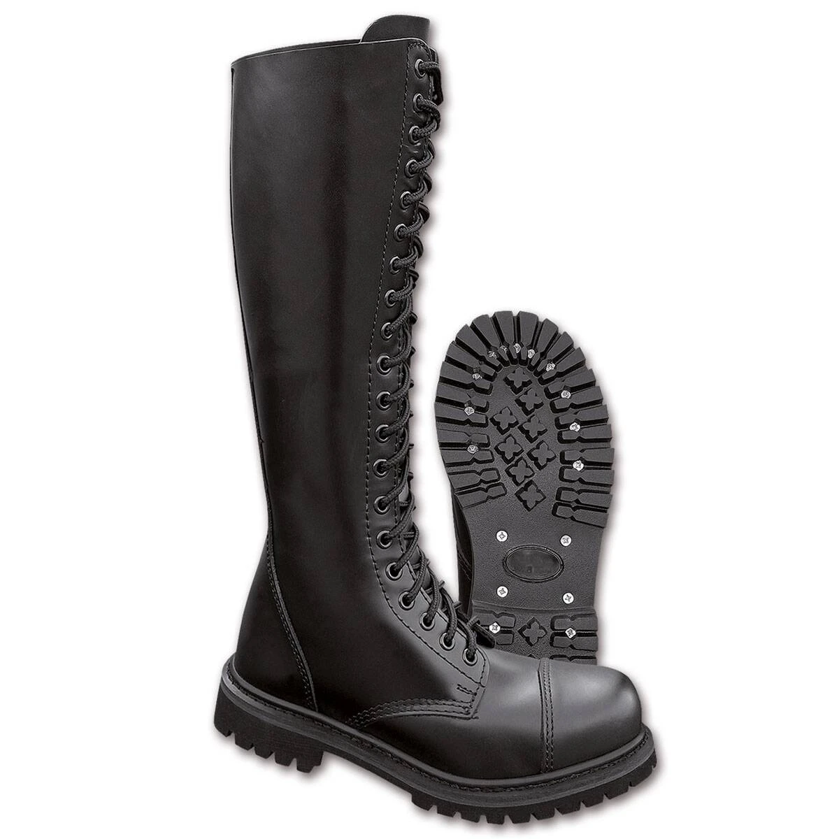 Der Klassiker unter den Lederboots besteht aus robustem Glattleder und hat stabile Nähte. Die Stiefel „20-Loch“ passen zu jeder Gelegenheit – ob im Gelände, in der Stadt oder bei einer Party. Sie sind schwarz, besitzen eine Stahlkappe in der Schuhspitze und eine geschraubte, geklebte und genähte Profilsohle. Der Schnürboot ist innen mit Leder und Textil ausgestattet. Die Boots überzeugen durch Qualität, Langlebigkeit und Design. Ein absoluter Kultschuh! Sie sind in den US-Größen 03-13 erhältlich. Bitte beachten Sie auch die Größenhinweise weiter unten.