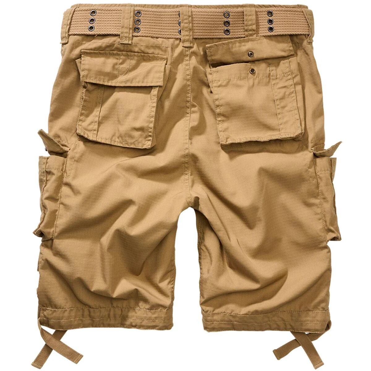 Die bewährte Brandit Savage Shorts gibt es jetzt auch aus leichtem und robustem RipStop-Material. Damit ist sie nicht nur stylisch und bequem, sondern auch für härtere Outdoor-Einsätze bestens geeignet. Sie besitzt 2 schräge Einschubtaschen, 2 geräumige Cargo-Beintaschen mit Druckknopfverschluss, 2 Gesäßtaschen mit Druckknopfverschluss sowie 2 Minipockets mit Druckknopfverschluss. Des Weiteren gib es an der rechten Seite ein kleines Reißverschlussfach sowie ein Print auf der rechten Beintasche. Am Bund und in den Beinenden befinden sich Tunnelzüge. Die tolle Cargoshorts mit weitem Bein wird inklusive eines robusten Vintage Gürtels ausgeliefert.
