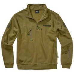 Der Brandit Tactical Sweat Troyer vereint Hoodie-Komfort mit taktischen Details. Innen angerautes Fleece-Mischgewebe speichert Wärme und liegt angenehm weich auf der Haut. Eine Kapuze mit Kordelzug schützt vor Wind, während der durchgehende Troyer-Reißverschluss das An- und Ausziehen erleichtert. Eine Brust- und eine Armtasche auf dem linken Unterarm organisieren Kleinteile; Loop-Panels vorn und an den Oberarmen nehmen Patches auf. Breite, elastische Bündchen schließen Kälte aus und halten den Pullover in Form.