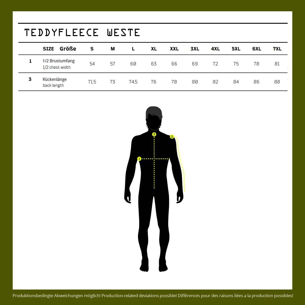 Die schwarze Teddyfleece Weste für Männer von Brandit mit Stehkragen und dem elastischen Saum ist eine wärmende Allroundweste aus hochflorig-warmen Teddy-Fleece. Das atmungsaktive Mesh-Innenfutter und der gerade Schnitt sorgen für ein angenehmes Tragegefühl. Ein hochwertiger Mittelreißverschluss, der Kinnschutz sowie die Windschutzleiste bieten ausreichend Komfort. Weitere praktische Details sind die 2 seitlichen Taschen mit Reverse-Reißverschlüssen. Die Innentasche wird mit einem hochwertigen Klettverschluss geschlossen. Alle Zipper-Puller sind vorgeformt und hochwertig verarbeitet. Diese bequeme Weste ist die perfekte Ergänzung Ihrer Garderobe für die kühlen Tage.