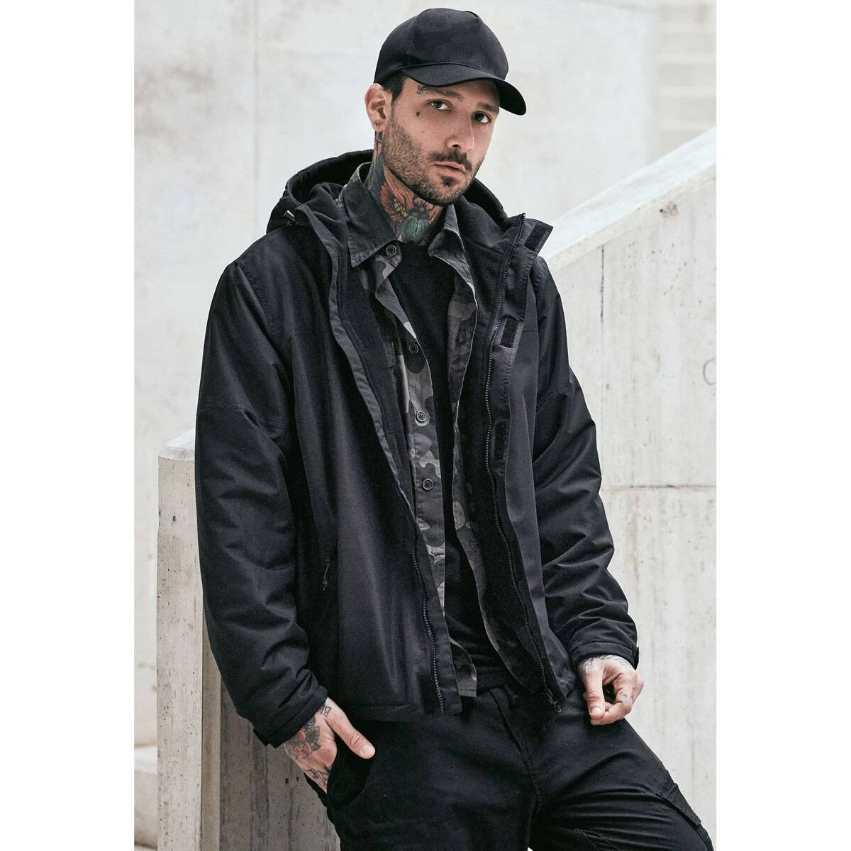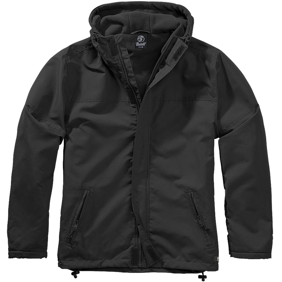 Anziehen und Wohlfühlen: Der Windbreaker mit Frontzip von Brandit ist aufgrund seines warmen Fleecefutters und des wind- und wasserabweisenden Außenmaterials die ideale Jacke für kühle, regnerische und stürmische Tage. Der Windbreaker hat einen stabilen Frontreißverschluss, der durch eine Windschutzleiste mit Klettverschluss bedeckt wird. Die Kapuze ist gefüttert und besitzt einen Kordelzug. Klettverschlüsse an den Ärmelenden und Tunnelzüge im Hüftbund sorgen für eine bequeme Weitenregulierung. Zwei seitliche Einschubtaschen mit Reißverschluss und eine Innentasche bieten ausreichend Platz für Dinge, die unbedingt dabei sein müssen.