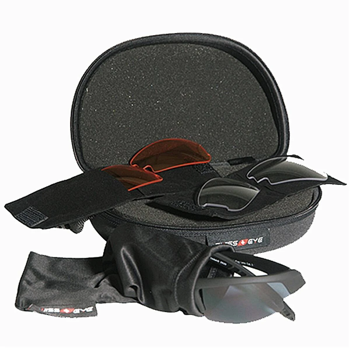 Die hochwertige ballistische Schutzbrille Gardosa von Swiss Eye ist ideal für den Schießsport, aber durch ihre aerodynamische Form auch für Freizeitaktivitäten wie Radfahren geeignet. Sie wird mit drei verschiedenen Wechselscheiben (smoke für Ganztagssonnenschutz, orange für intensive Kontrastverstärkung und clear für schlechte Lichtverhältnisse) , verstellbaren Nasenpads, einem Etui samt Karabiner sowie einem auch als Putztuch nutzbaren Mikrofaserbeutel ausgeliefert. Die gummierten, geriffelten Bügel gewährleisten, dass die Brille nicht verrutscht. Selbstverständlich besitzt sie eine Antifog/Antiscratch-Beschichtung.