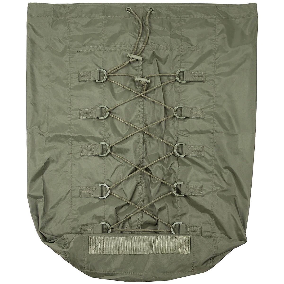 Der Kompressionssack der Bundeswehr (hochwertiger Nachbau) eignet sich für den Bundeswehr Schlafsack, aber auch für andere Gepäckstücke, die komprimiert werden sollen. Außen besitzt er 10 D-Ringe mit Kordelzug und Stopper und innen eine einseitig angenähte Abdeckung. Er wird mittels Kordelzug mit Stopper verschlossen. Damit lässt sich der Packsack inkl. Inhalt um bis zu 50% komprimieren. Unten befindet sich ein Tragegriff.