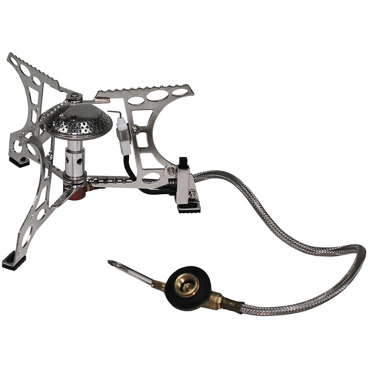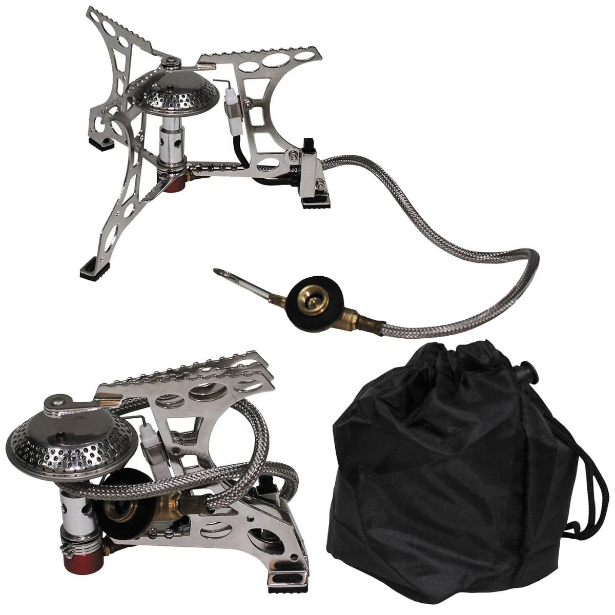 Der 3000 Watt starke Gaskocher von FOX Outdoor verfügt über einen Edelstahl-Brenner, ein Messingventil sowie einen klappbaren Regler. Zum einfachen Starten ist er mit einer Piezo-Zündung ausgestattet, die ein Feuerzeug oder Streichhölzer zum Anzünden überflüssig machen. Dank eines 37 cm langen Zuführschlauches kann eine passende Schraubventil-Kartusche getrennt aufgestellt werden, was ein bequemeres Kochen ermöglicht. Der Camping Kocher steht stabil auf drei gummierten Standfüßen. Die Topfaufnahme eignet sich mit einem Durchmesser von ca. 17 cm auch für größere Töpfe und Pfannen. Für den Transport lässt sich der Kocher klein zusammenklappen und sicher in dem mitgelieferten Transportbeutel verstauen. Zusätzlich befindet eine bebilderte Anleitung (Deutsch und Englisch) im Lieferumfang.