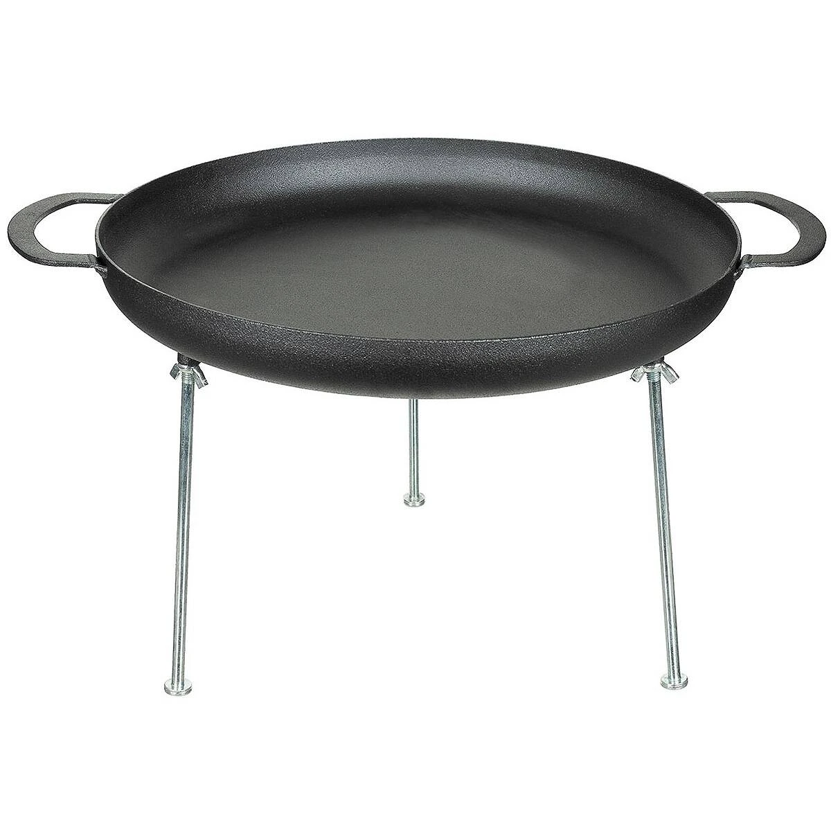 Die FOX Outdoor Feuerschale aus Eisen kann ideal als Feuer- oder Kochstelle verwendet werden. Wenn man die Grillschale mit den drei abnehmbaren Standfüßen (Bodendistanz ca. 27 cm) über ein offenes Feuer stellt, dann kann man in ihr Kochen, Grillen oder Braten. Mit einem Durchmesser von 44 cm passt dabei einiges Grillgut hinein. Bei der Verwendung als Feuerschale kommt einfach Holz direkt in die Schale. Durch die 2 Griffe lässt sich der Standort der Feuerschale bequem wechseln.