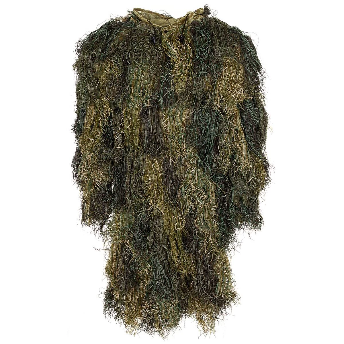 Der Ghillie Parka wird überwiegend von Scharfschützen und Jägern eingesetzt und ist ideal zum schnellen und effektiven Tarnen des menschlichen Körpers geeignet. Der Parka ist feuerhemmend behandelt und wird inklusive eines Transportbeutels mit Trageriemen und Kordelzug geliefert. Man kann ihn einfach wie eine Jacke überziehen und die Kontur des Trägers wird aufgrund der Tarnfarbe und der unregelmässigen Oberflächen-Optik verwischt. Der Mantel besitzt eine Druckknopfleiste, 2 Durchgriffstaschen und eine Kapuze, an der sich ein elastischer Tunnelzug mit Kordelstoppern befindet. An der Taille gibt es ein Elastikband und am Ärmelsaum einen Gummizug.