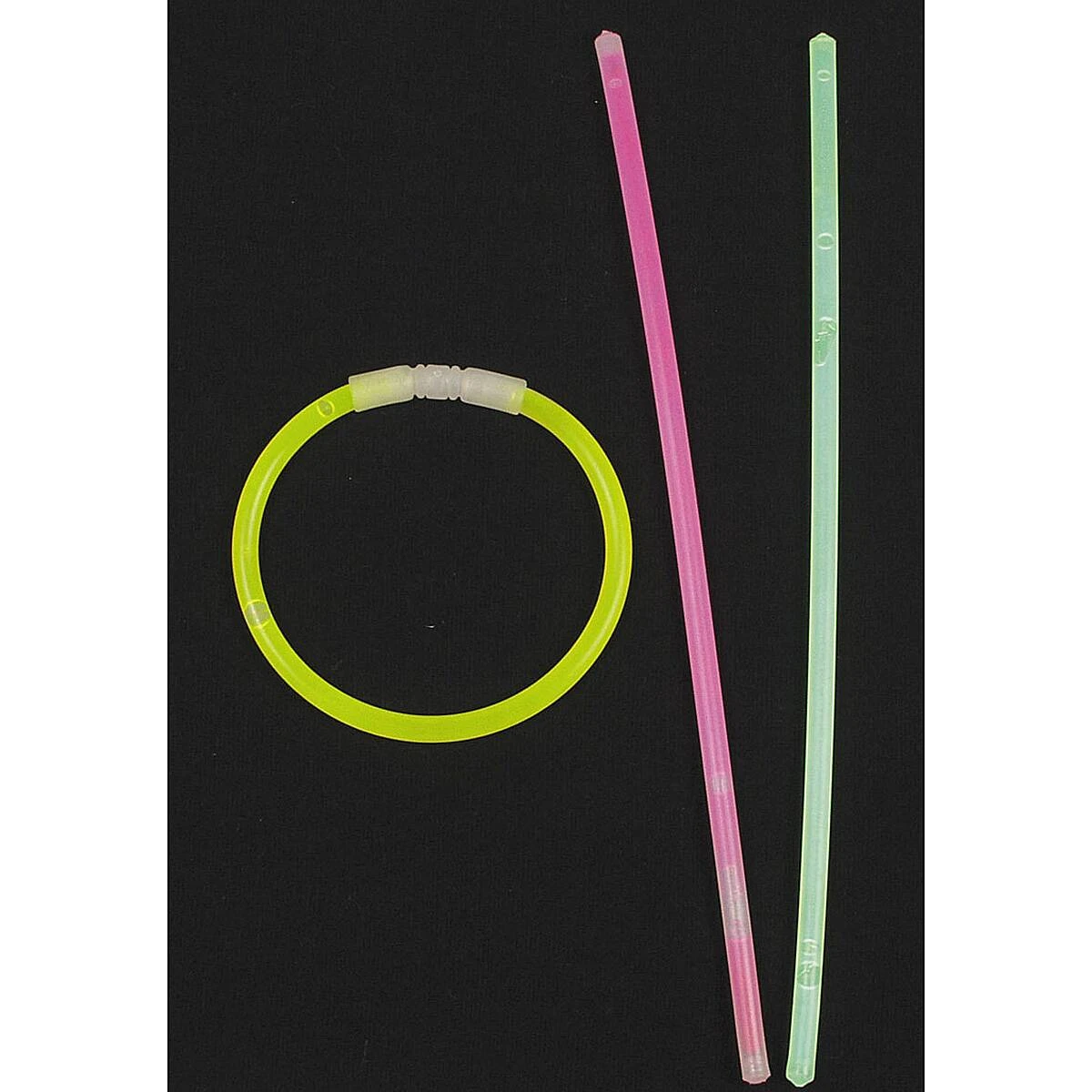 Sie erhalten in einem Karton 65 Leuchstäben, die als Halsband und Armreif verwendbar sind. Die Leuchtstäbe erhalten Sie in diversen Farben.
