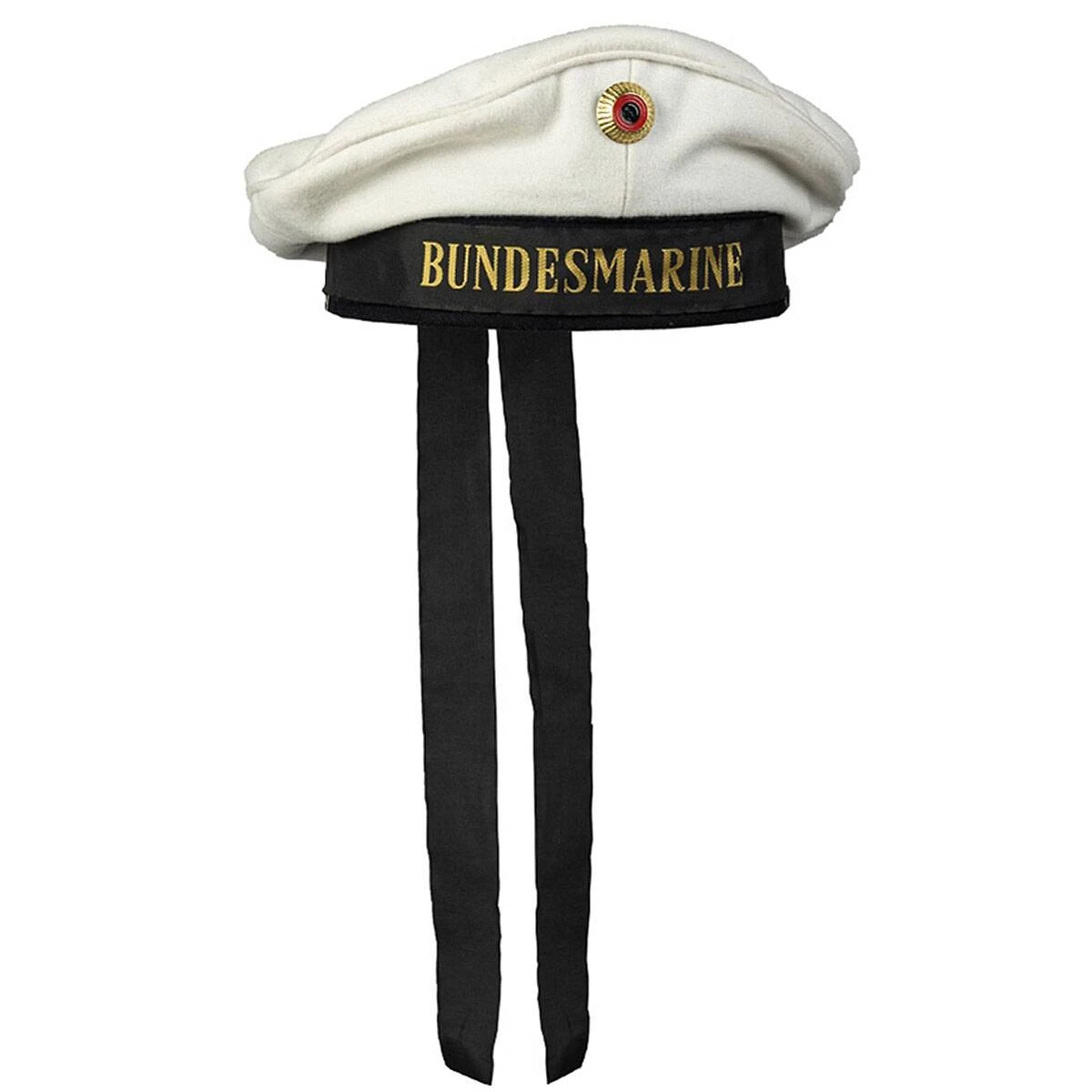 Die BW Marine Tellermütze ist aufwendig verarbeitet und hat einen Kokarde aus Metall. Außerdem besitzt sie ein Mützenband und ein Leder-Schweißband. Das Wort Bundesmarine ist selbstverständlich aufgedruckt.
