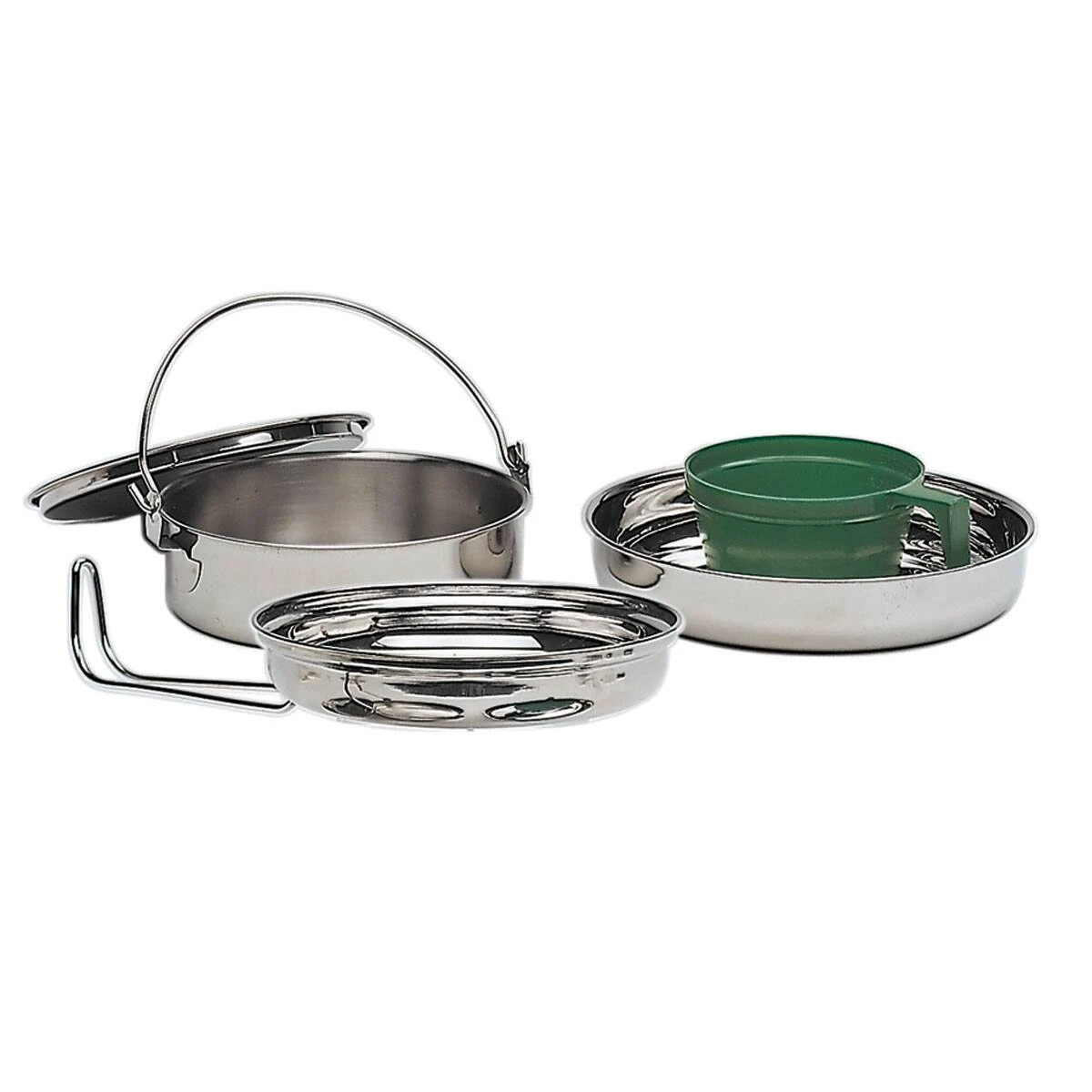 Dieses Edelstahl-Kochgeschirr darf bei keinem Camping-Trip fehlen. Das Geschirrset beinhaltet 1 Topf mit Deckel, 1 Deckelpfanne mit Griff und eine Kunstofftasche. Topf und Pfanne bestehen aus qualitativ hochwertigem Edelstahl. Dieser ist rostfrei, abriebfest, hygienisch und langlebig. Das Geschirr ist trotz der robusten Qualität extrem leicht und genau das Richtige Camping-Geschirr für den nächsten Urlaub oder die Outdoor-Tour.