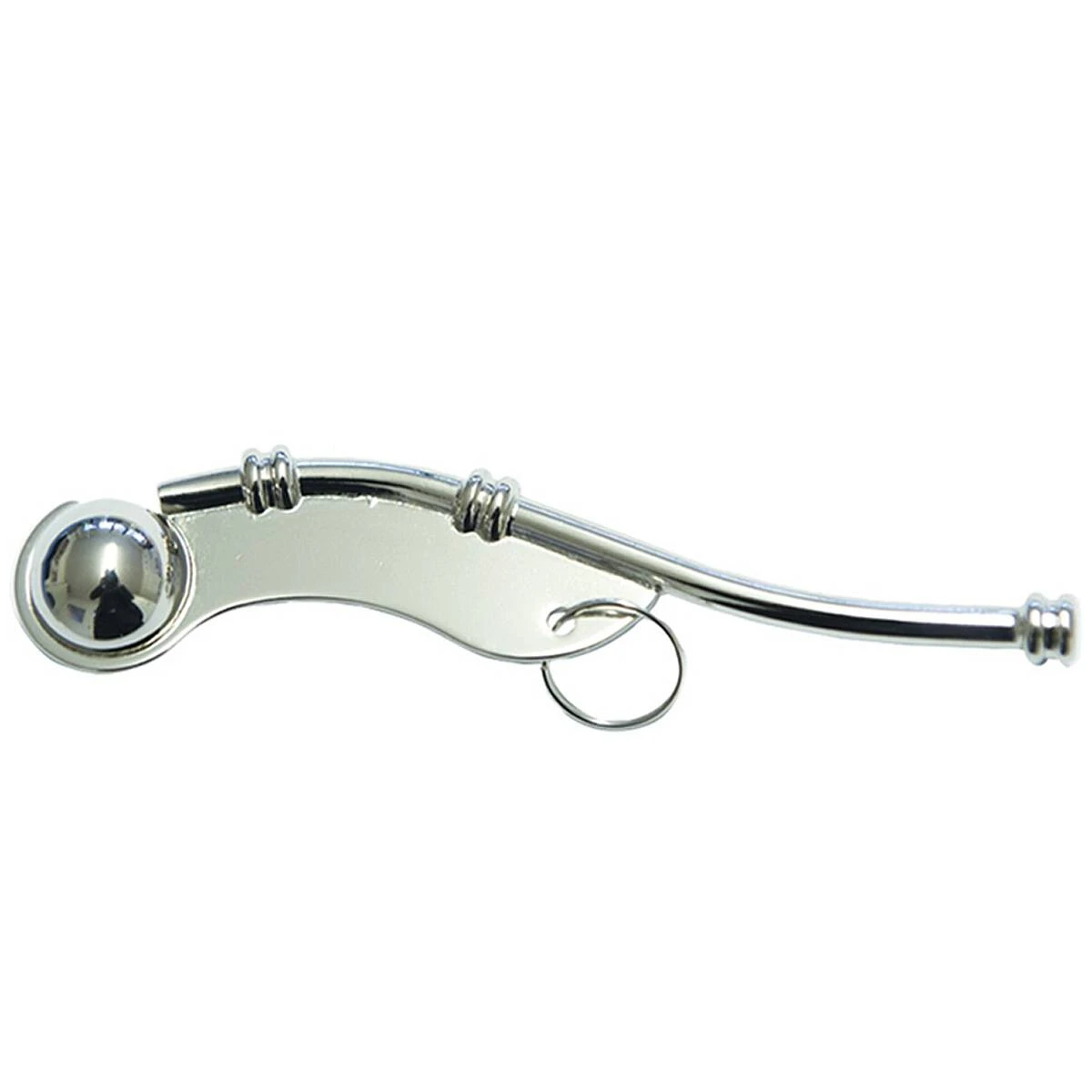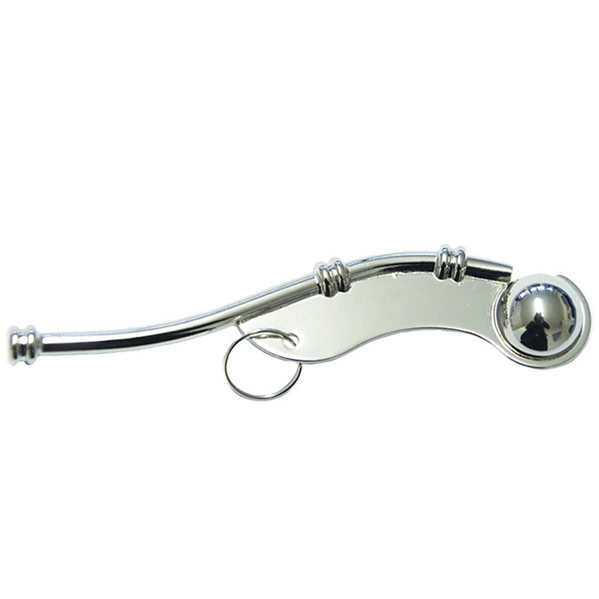 Die Pfeife Bootsmannsmaat ist aus Messing hergestellt und zusätzlich vernickelt. Damit ist sie sehr robust und widerstandsfähig gegen äußere Einflüsse wie Spritzwasser o.ä. Sie gibt einen typischen pfeifenden Ton von sich, der durch die überströmende Luft über die kleine geöffnete Kugel entsteht. Durch den kleinen Sprengring kann man die Pfeife einfach an einer Schnur befestigen und z.B. um den Hals tragen. Sie ist für alle Wassersportarten ein altbewährtes Signalmittel.