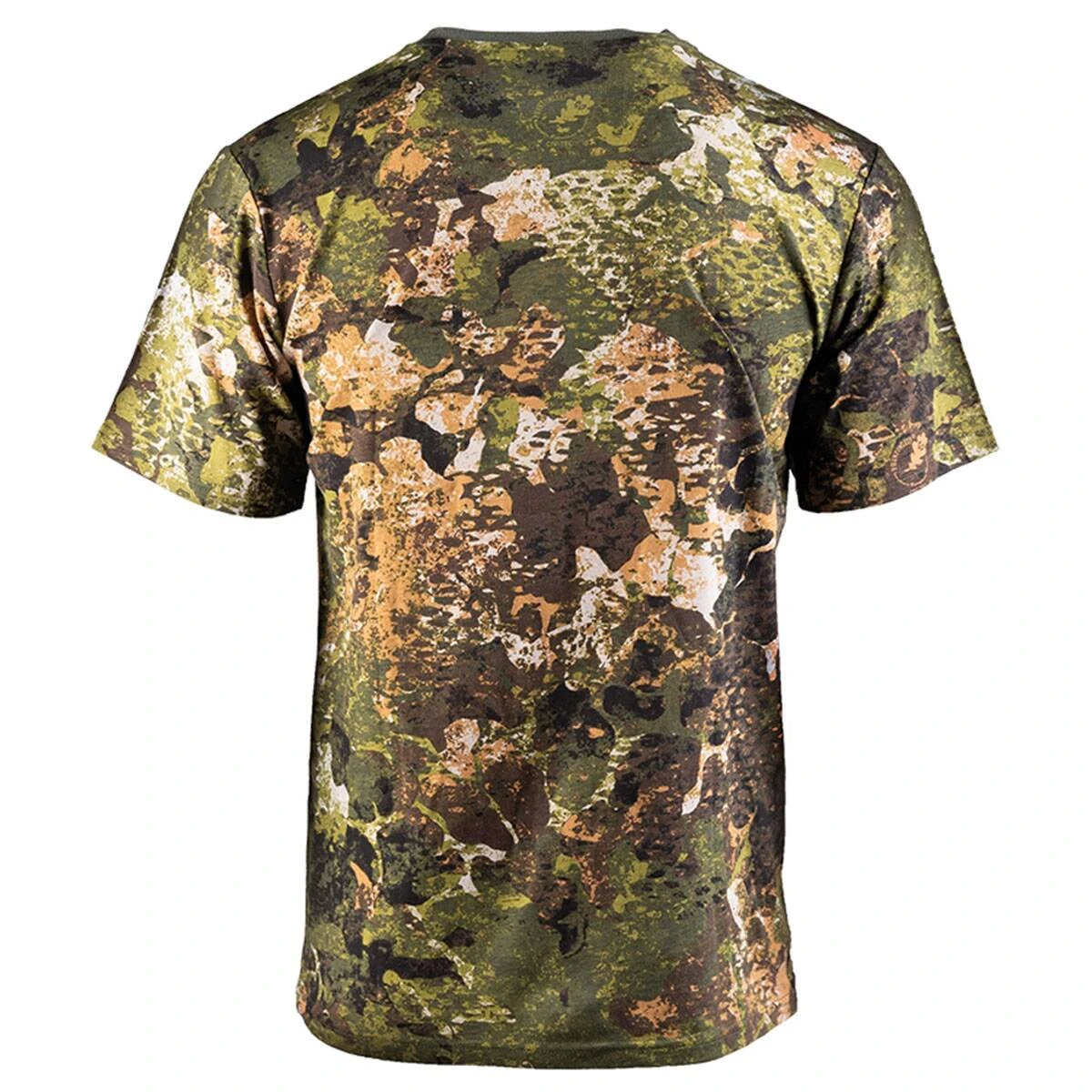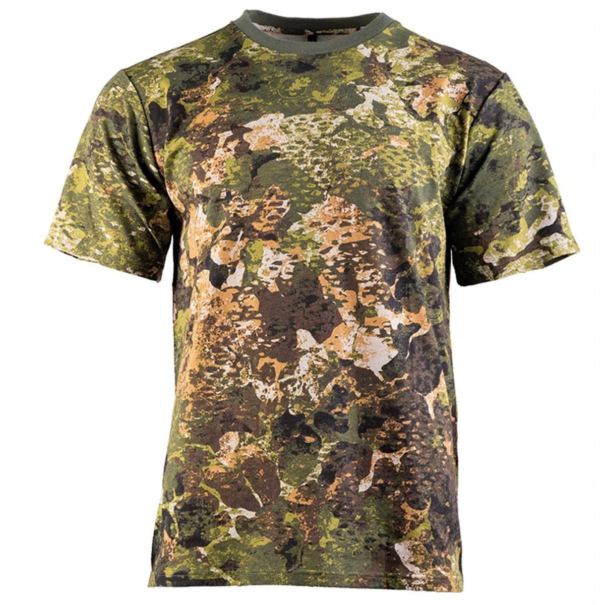 Das tolle, trendige T-Shirt für (fast) alle Gelegenheiten. Ob bei der Arbeit, in der Freizeit oder in der Disko: Mit diesem Tarnshirt kommt man überall gut an. Es besteht aus 100% Baumwolle und ist daher angenehm zu tragen. Das T-Shirt besitzt kurze Ärmel, hat an Arm und Saum eine doppelte Naht und einen eingefassten Kragen aus elastischem Ripp.