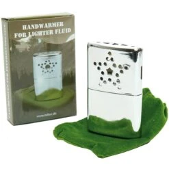 Dieser Taschenofen wird mit normalem Feuerzeugbenzin betrieben (Lieferung erfolgt unbefüllt) und spendet bis zu 12 Stunden wohlige Wärme. Der Einsatz ist völlig ungefährlich, da keine offene Flamme entsteht. Im Lieferumfang des Handwärmers befindet sich ein olivgrünes Samtsäckchen, welches zur problemlosen Aufbewahrung dient. Eine Bedienungsanleitung liegt der Packung bei.