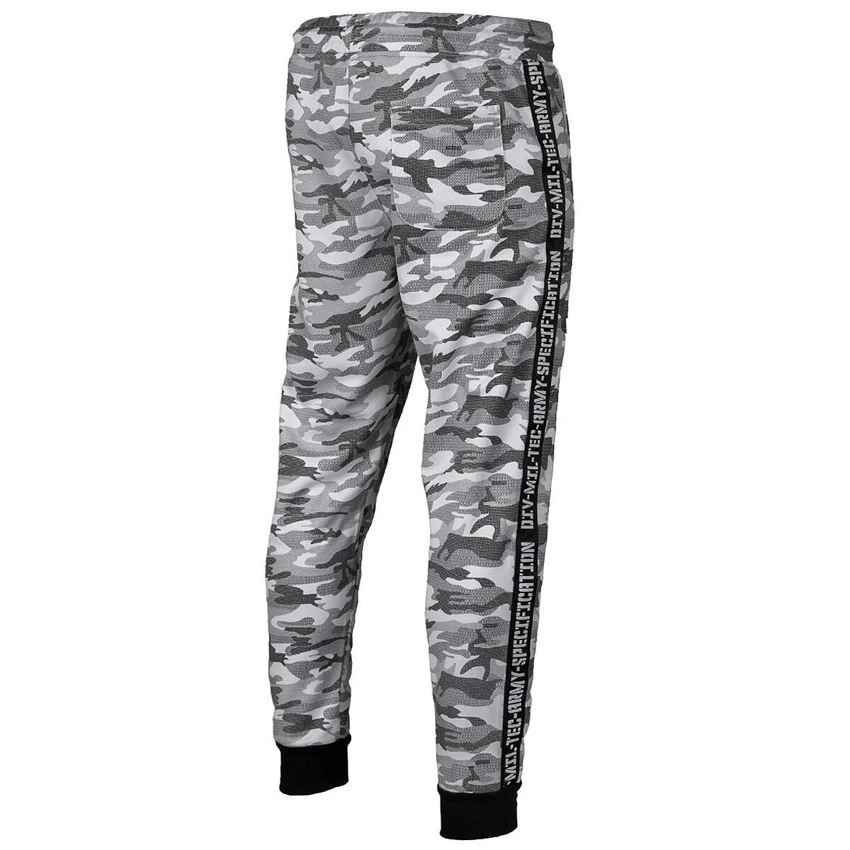 Die lässige Trainingshose mit Camouflagemuster von Mil-Tec ist genau die richtige Wahl für Sport und Freizeit. Durch den breiten, elastischen Bund mit Kordelzug sitzt die Hose immer bestens, auch bei intensiver Bewegung. Zusätzlich sorgen die breiten, elastischen Bündchen am Beinabschluss für bequemen Tragekomfort. Ein echter Hingucker ist der seitliche Streifen mit Mil-Tec® Schriftzug. Die 2 Schubtaschen und die Gesäßtasche sind sehr praktisch, um kleine Dinge auch beim Trainieren immer griffbereit zu haben.
