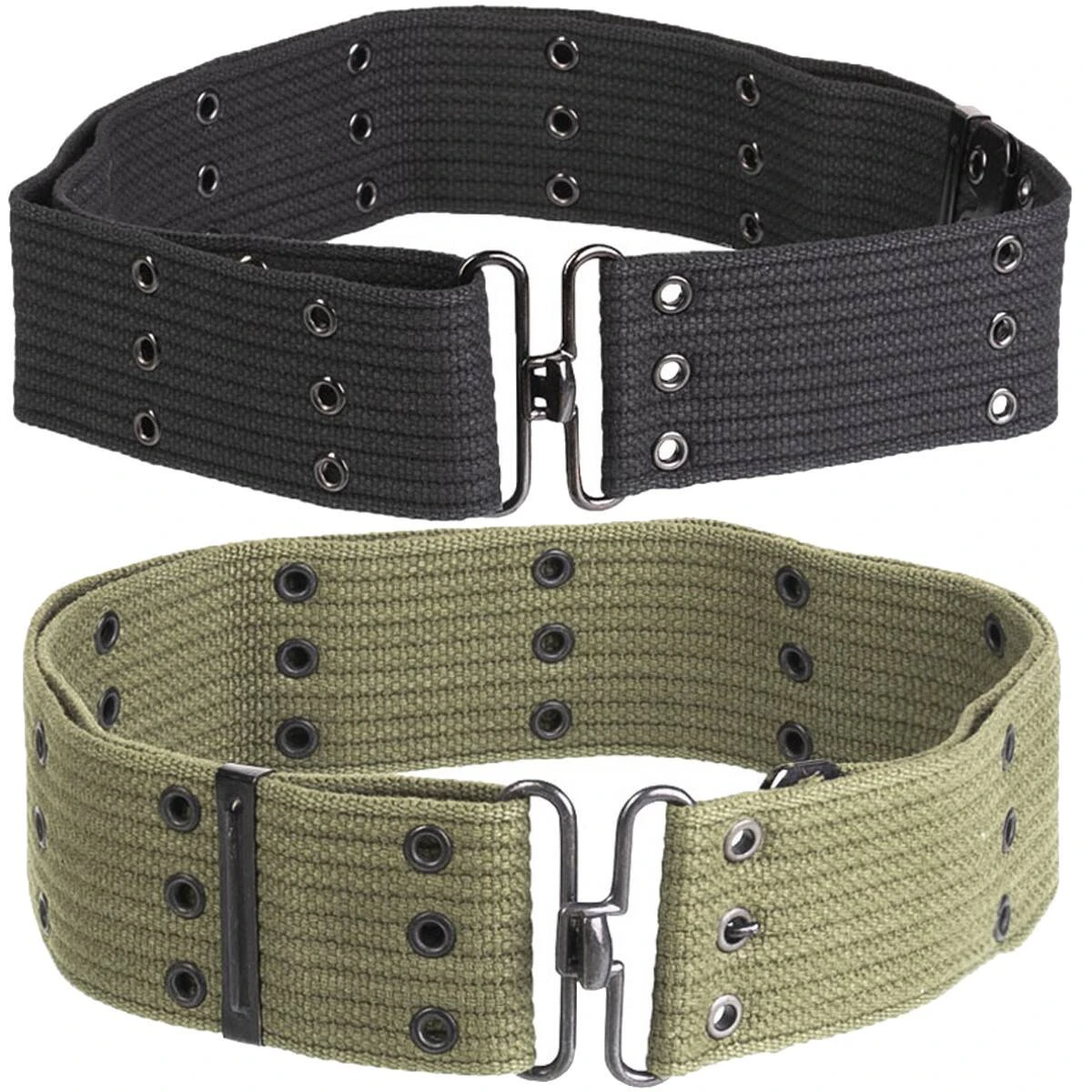 Die US Lochkoppel LC-1 orientiert sich am klassischen G.I.-Gürtel und eignet sich als stabiler Tragegurt für Feldhosen, Einsatzbekleidung oder Outdoor-Gear. Das strapazierfähige, dicht gewebte Baumwollband ist entlang der gesamten Länge mit Dreier-Lochreihen versehen, über die sich die Weite stufenlos anpassen lässt. Eine schwarze Metallschnalle mit Doppelsteg hält zuverlässig und ermöglicht gleichzeitig schnelles Öffnen. Mit 5,5 cm Gurtbreite verteilt die Koppel das Gewicht von Ausrüstung gleichmäßig und bleibt durch die solide Materialauswahl besonders langlebig.