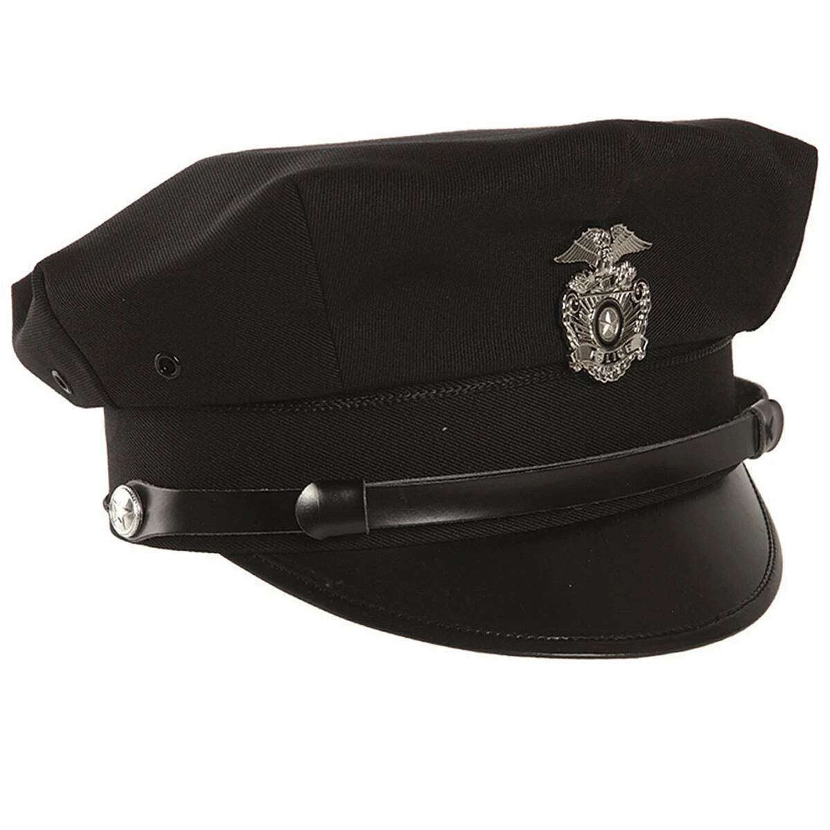 Die US Polizei Schirmmütze ist aufwendig mit 8 Nähten verarbeitet und mit je 2 Belüftungsösen rechts und links versehen. Im Inneren besitzt sie ein textiles Schweißband und im oberen Mützenrand einen Metallreifen. Der Schirm hat eine wasserfeste Beschichtung. Die Mütze ist auch als Security Schirmmütze geeignet.