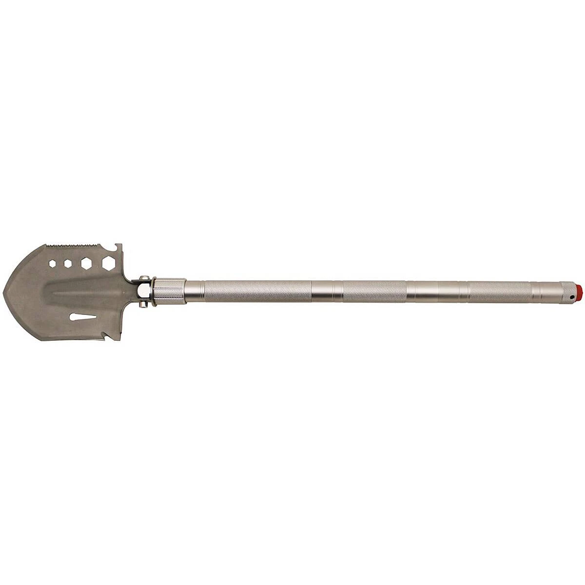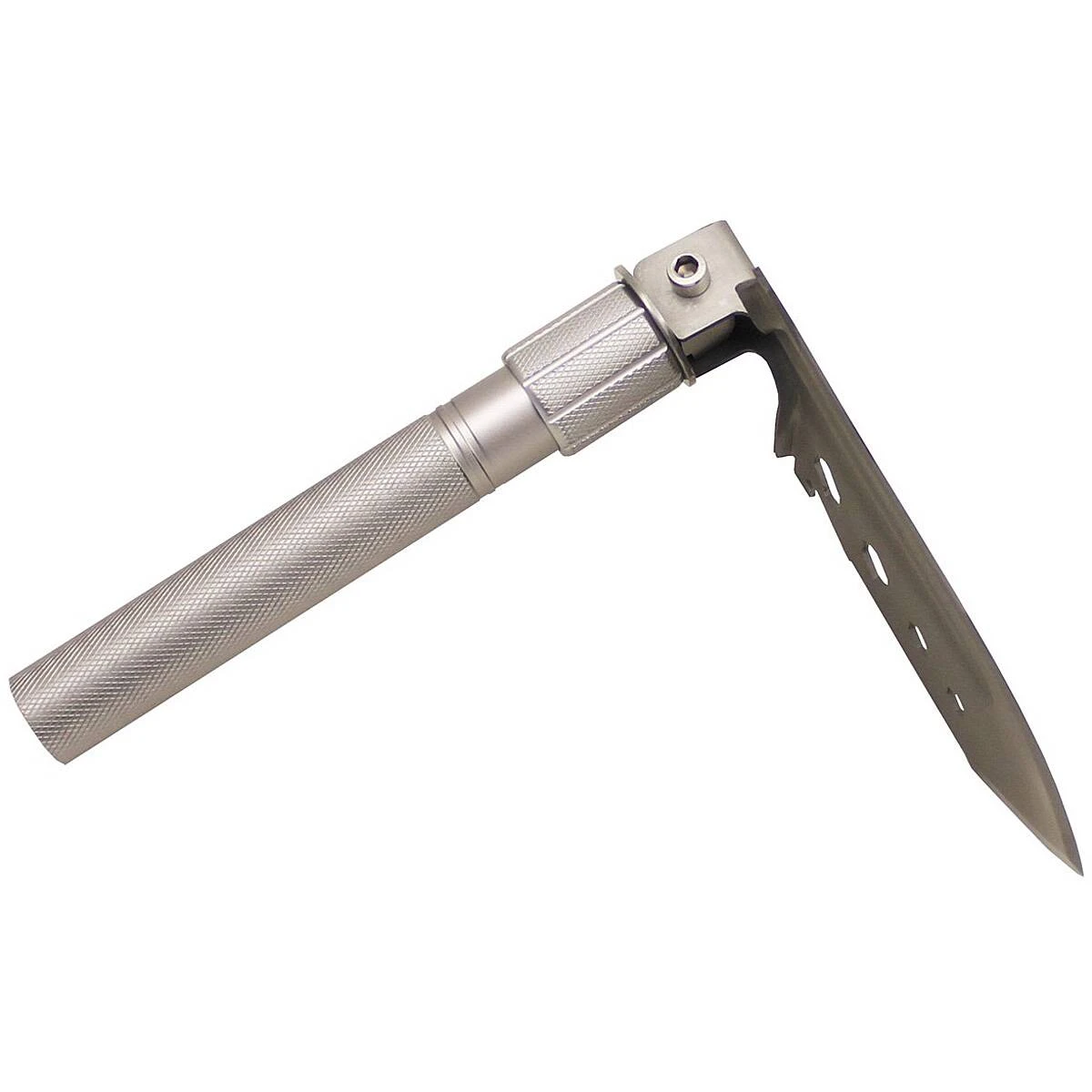– Schaufelblatt aus robustem 2Cr13 Stahl mit einseitiger Sägezahnung und Messerklinge; besitzt diverse Standzungen und kann als Schraubenschlüssel (verschiedene), Flaschenöffner, Nageleisen und Säge verwendet werden