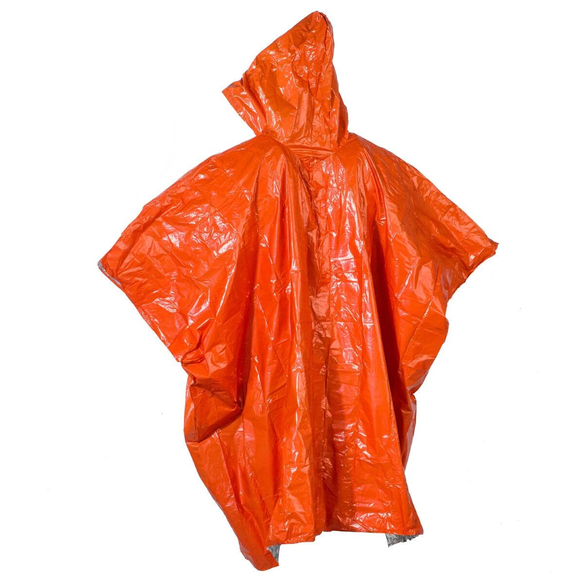 Der Notfall Poncho mit Kapuze in der Signalfarbe orange ist einseitig alubeschichtet. Die Pfeife ist am Kordelstopper des Transportbeutels befestigt. Der Notfall Regenponcho ist sehr leicht, wasserdicht und funktioniert als Notfalldecke oder Erste Hilfe Regenjacke. Der Poncho gehört in jede Überlebensausrüstung für Biwak, Bushcraft und sonstige Outdoor-Aktivitäten.