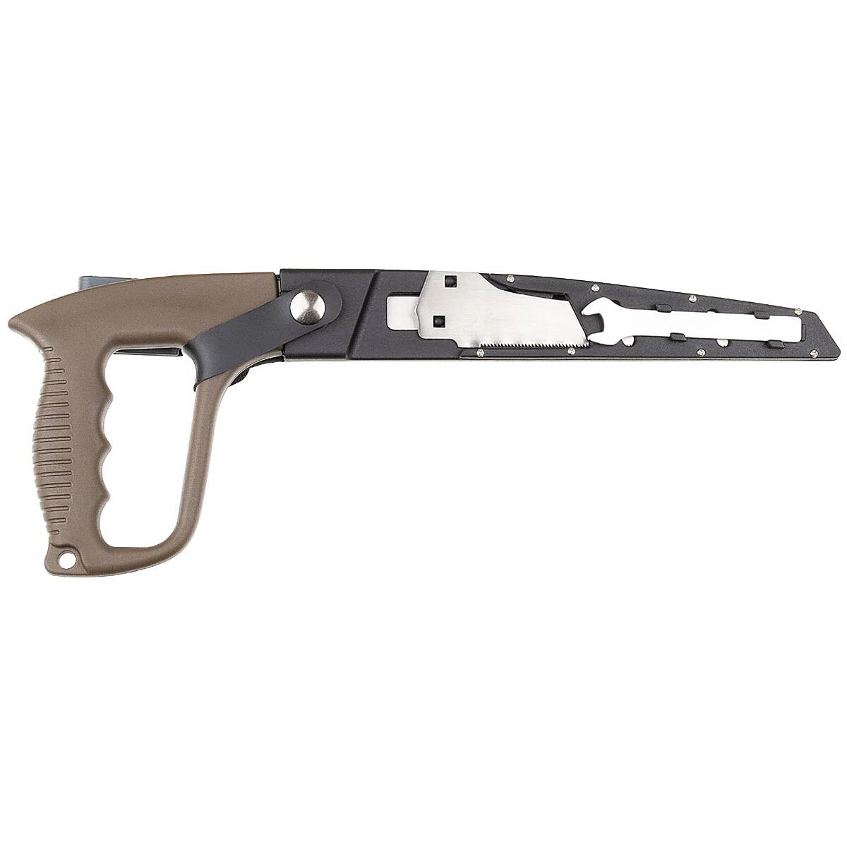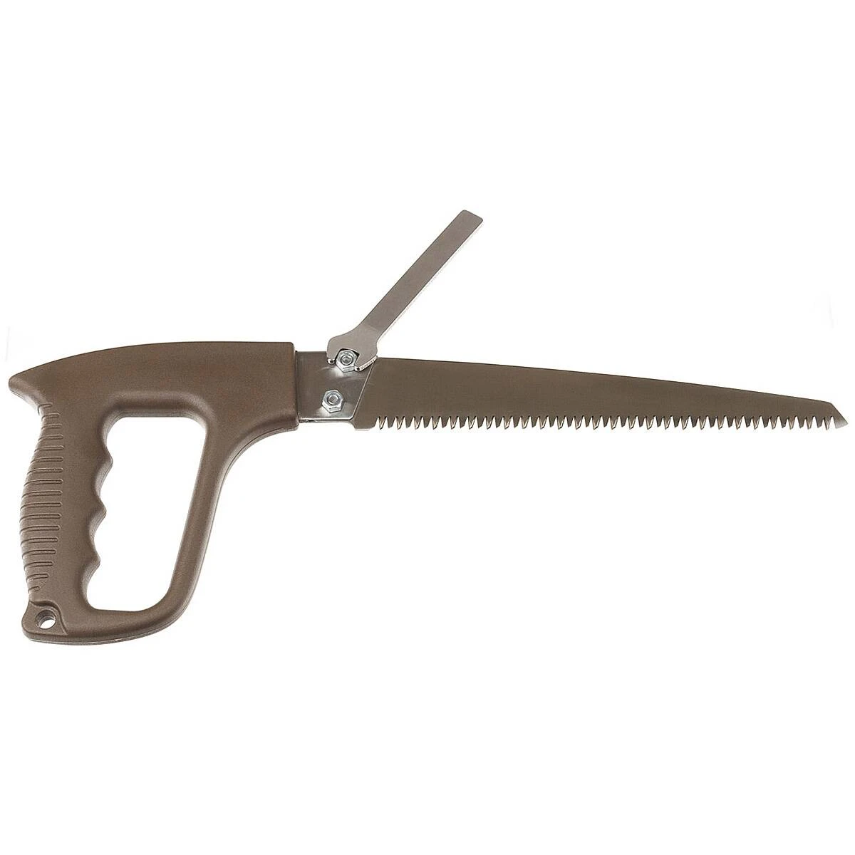 Die Outdoor Handsäge ist auch bei der Heimarbeit ein nützlicher Helfer. Sie wird mit 2 unterschiedlichen Sägeblättern ausgeliefert (1 Sägeblatt mit Grobzahnung ca. 20 cm, 1 Sägeblatt mit Feinzahnung ca. 20 cm). Dabei ist die zerlegbare Säge äußerst kompakt und passt in jeden Rucksack. Ihre Zähne sind extra geschliffen und gehärtet, so dass die Schnittleistung und Qualität sehr hoch ist. Die Sägeblätter können mit dem in der Kunststoffscheide integrierten Schraubenschlüssel ganz einfach mit nur 2 Schrauben gewechselt werden. Auch das nicht benötigte Sägeblatt kann in der Scheide versteckt werden. Des Weiteren besitzt dieses tolle Werkzeug einen Sicherungsriemen und einen verstellbaren Gürtelclip.