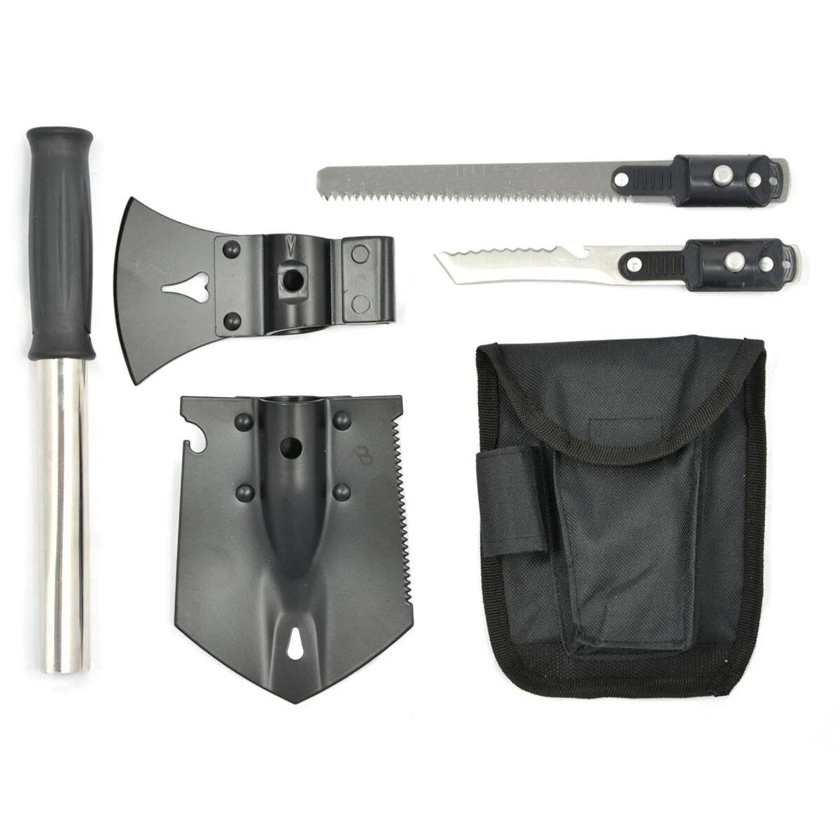 Dieses unversell einsetzbare Outdoorset besteht aus sechs praktischen Werkzeugen, schnell und einfach auf den Universalstiel gesetzt werden können. Es beinhaltet alle Werkzeuge, die man beim Camping benötigt. Im Einzelnen sind dies ein Beil, ein Spatenblatt (17 x 12 cm), eine Säge sowie ein Messer mit Flaschen- und Dosenöffner. Dieses tolle Multifunktionsset wird inklusive einer Transporttasche mit Gürtelschlaufe ausgeliefert.