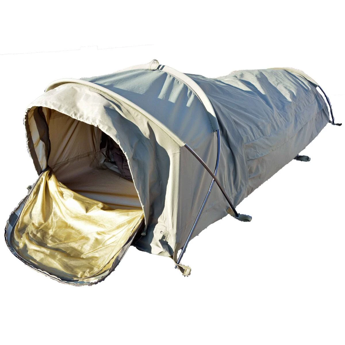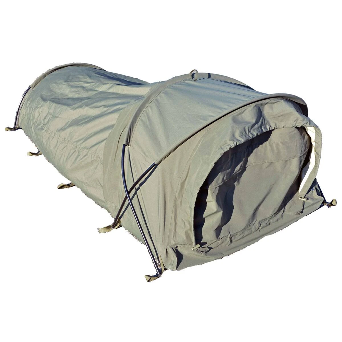 Durch die intuitive und einfache Bedienung lässt sich der Shelter schnell aufbauen. Der Eintritt in das Zelt ist sowohl von vorne als auch von der Seite möglich, was den Nutzungskomfort gewährleistet. Ein zusätzliches Moskitonetz schützt vor Insekten. Das neue Modell verfügt über eine zusätzliche Belüftungsöffnung mit Moskitonetz am Zeltboden. Die Öffnung ist über einen Abzieher mit Stopper selbstregulierbar. Ein wichtiges Element ist auch die Verwendung eines Rahmens um die Beine, damit das Bivi nicht mit dem Benutzer in Kontakt kommt.