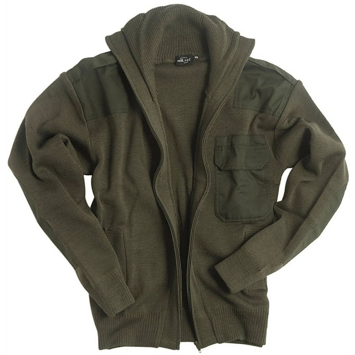 Die hochwertige und bequeme MIL-TEC Strickjacke besitzt einen durchgehenden Frontreißverschluss und einen hoch schließenden Rollkragen. Außerdem hat sie eine aufgesetzte Brusttasche mit Klettverschluss, 2 seitliche Einschubtaschen, Schulterklappen sowie Schulter- und Unterarmbesatz als Verstärkung. Die Strickjacke ist dank des hohen Anteils Schurwolle hochfunktionell: Bei Kälte wärmt und isoliert sie, bei Wärme nimmt sie Feuchtigkeit auf und hält die Haut trocken. Sie ist ein toller Allrounder, ob im Beruf oder in der Freizeit.