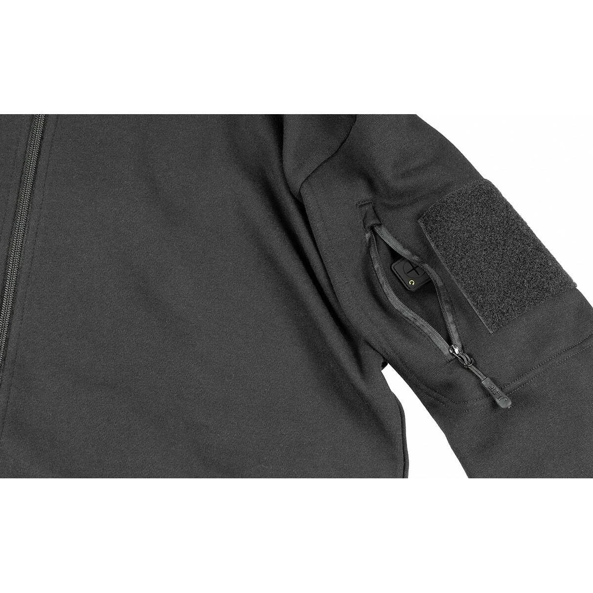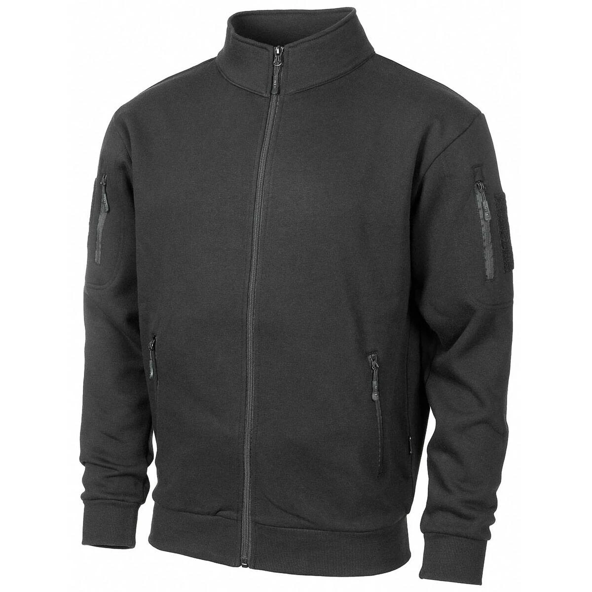 Die komfortable Sweatjacke Tactical zeichnet sich durch ihren bequemen, sportlichen Schnitt sowie ihre vielen nützlichen Details aus und ist ein passendes Kleidungsstück für alle Tage. Sie ist innen weich angeraut und besitzt einen stabilen Frontreißverschluss, einen Stehkragen sowie Strickbündchen am Bund und an den Ärmeln. In den 2 Hüfttaschen mit Reißverschluss gibt es genügend Platz und auch in den 2 Oberarmtaschen mit Reißverschluss und Kopfhörerausgang können Kleinigkeiten untergebracht werden. Letztere sind jeweils mit einem 10 x 10 cm großen Klettflauschpatch besetzt.